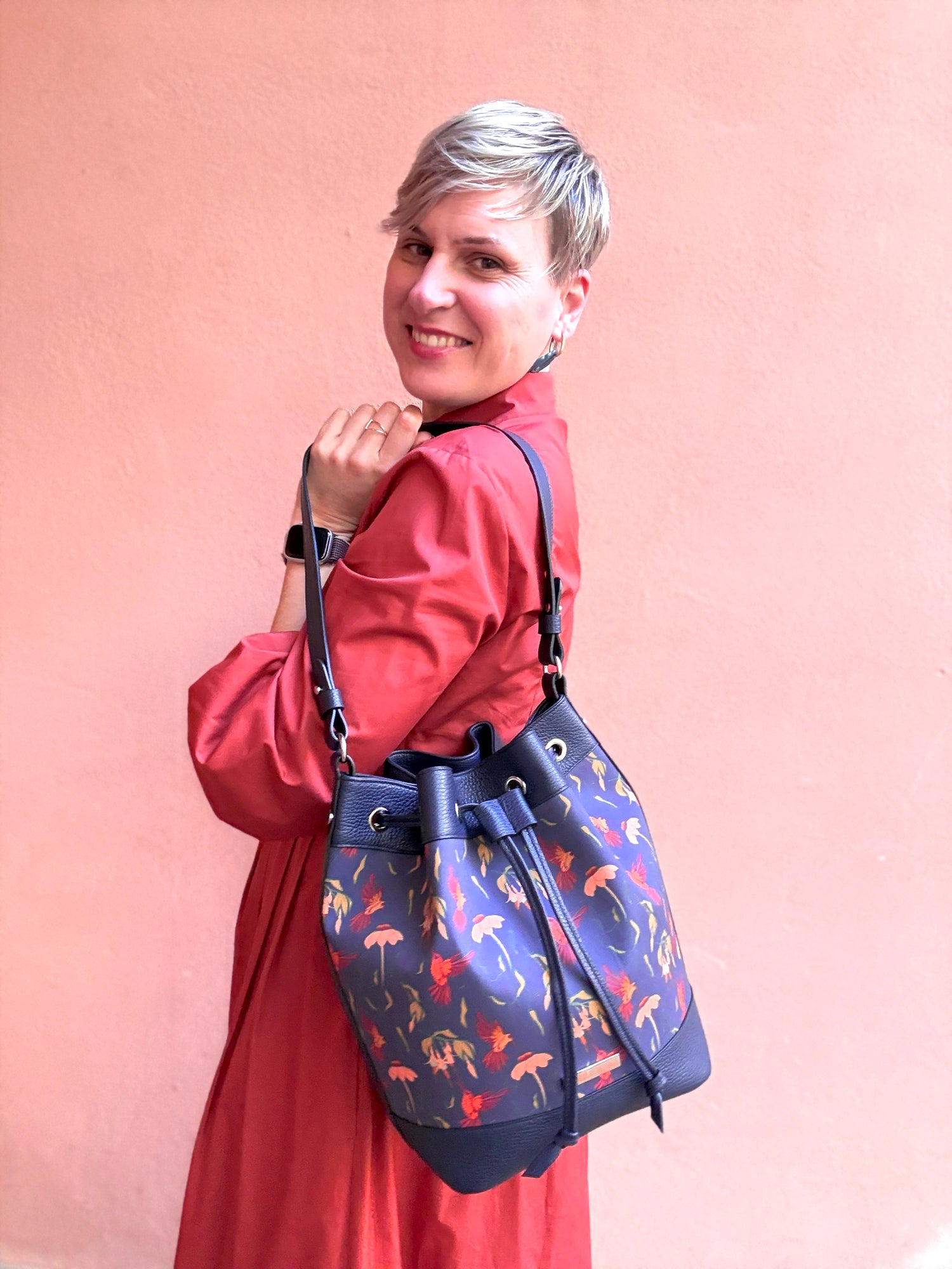 Ho acquistato questa creazione di Laura e ne sono rmasta molto molto soddisfatta! Conosco la qualita' della pelle, la brillantezza dei colori e la fattura delle sue borse (avendo acquistato altri suoi articoli). La Florence e' capiente, ha il taschino interno ed esterno (utilissimi), ma allo stesso tempo ha una dimensione raccolta: e' un concentrato di estetica, funzionalita' e leggerezza! La definirei aasolutamente un must-have
