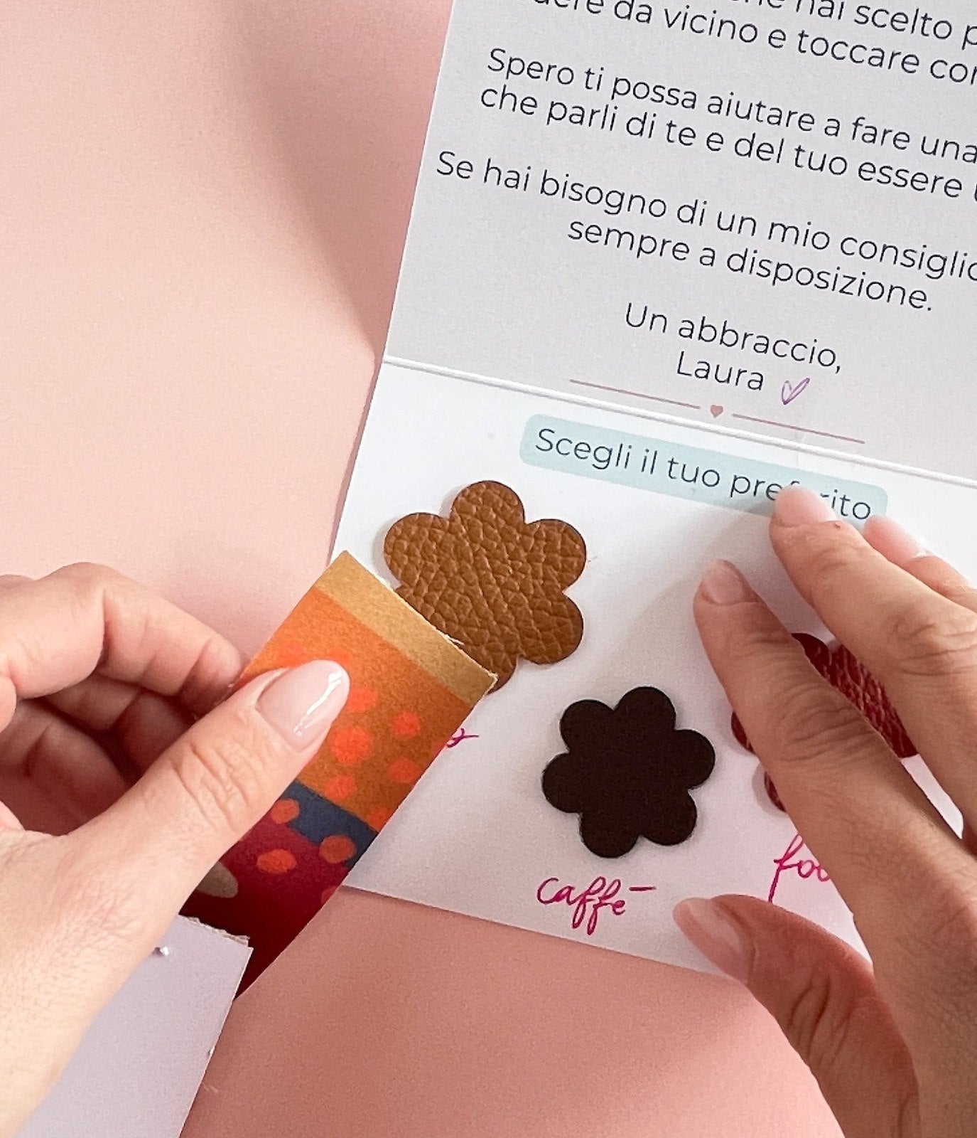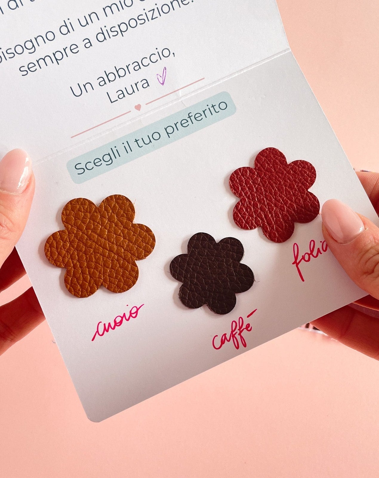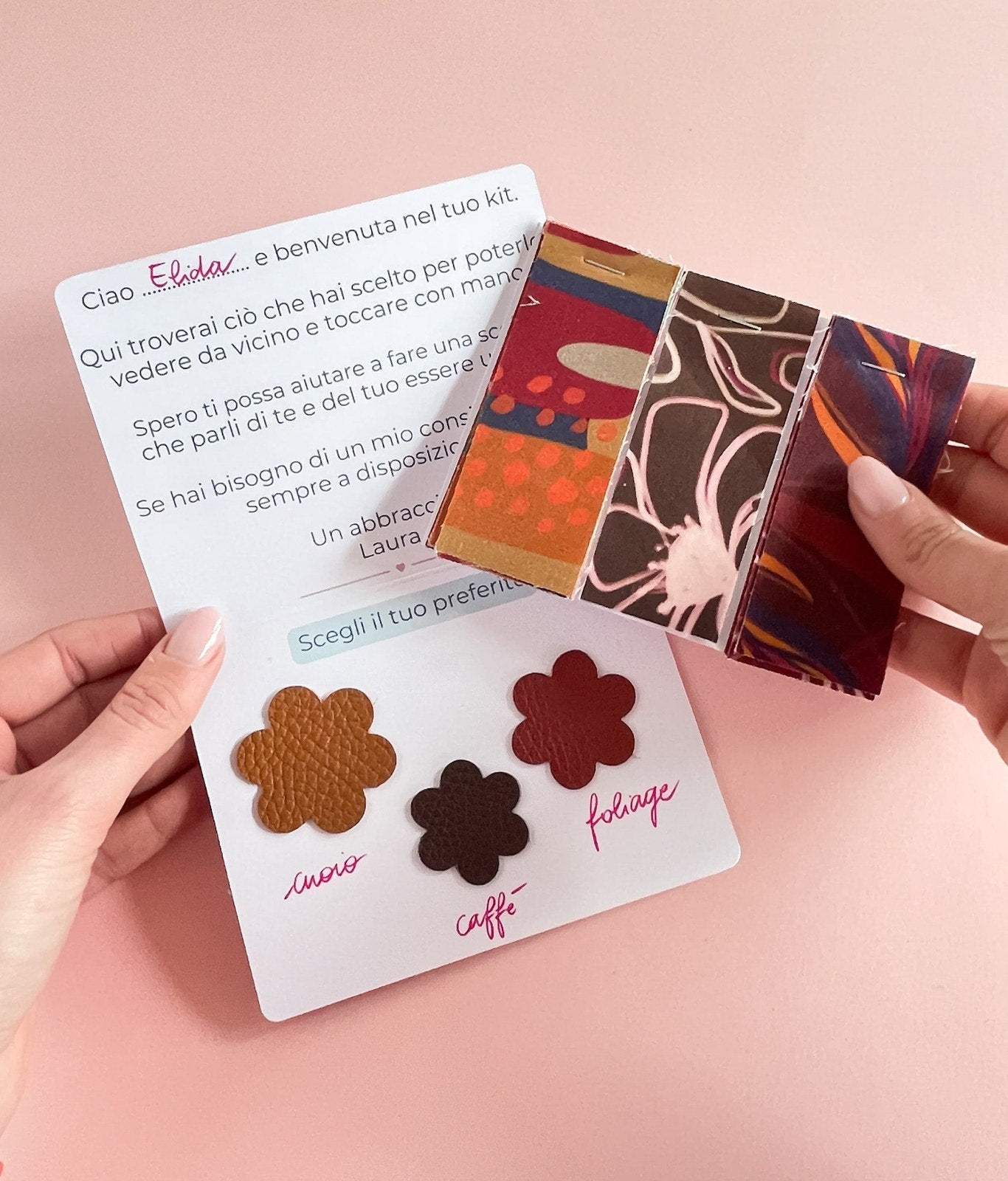 Potrai scegliere 3 colori di vera pelle da includere al suo interno, da poter vedere con gli occhi e toccare con mano.
