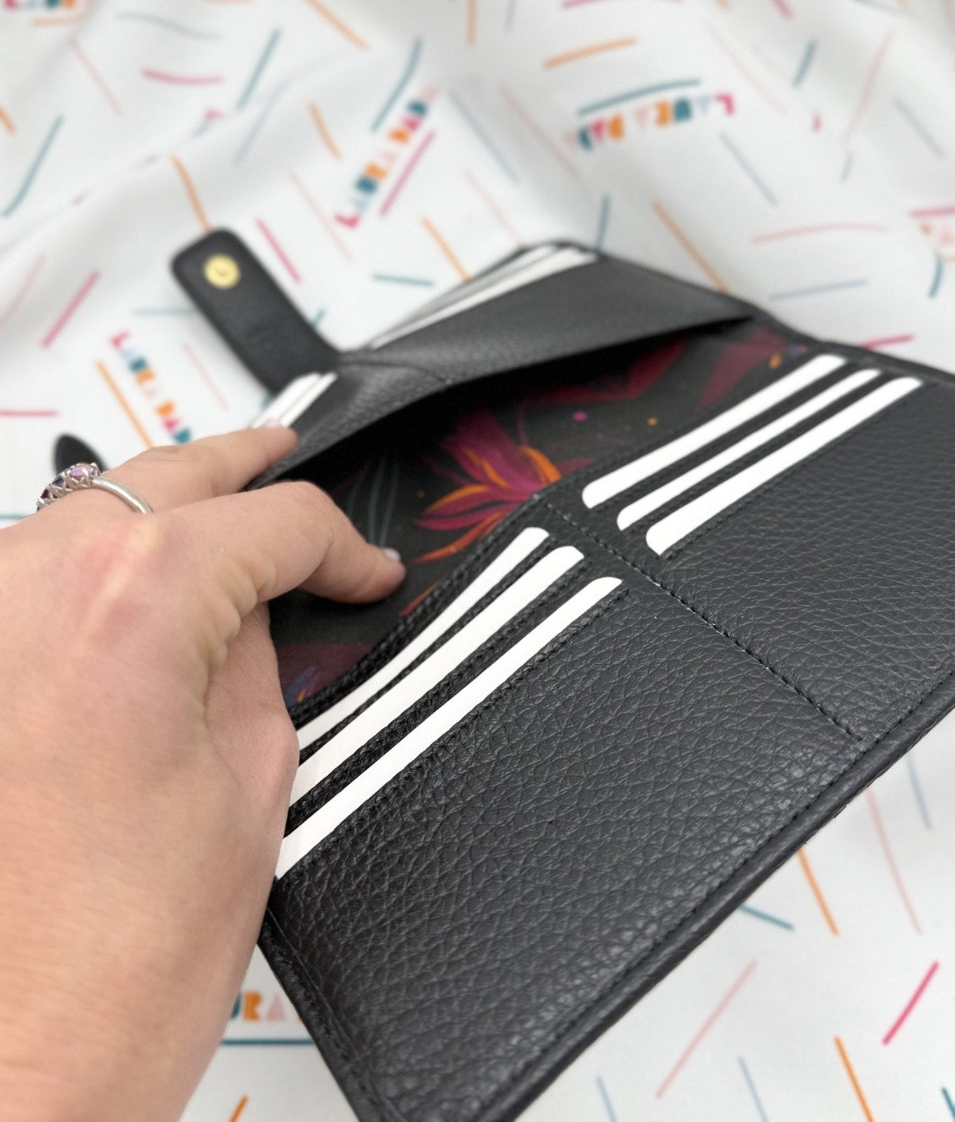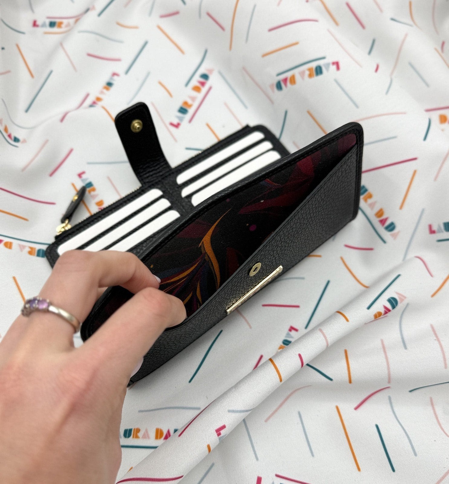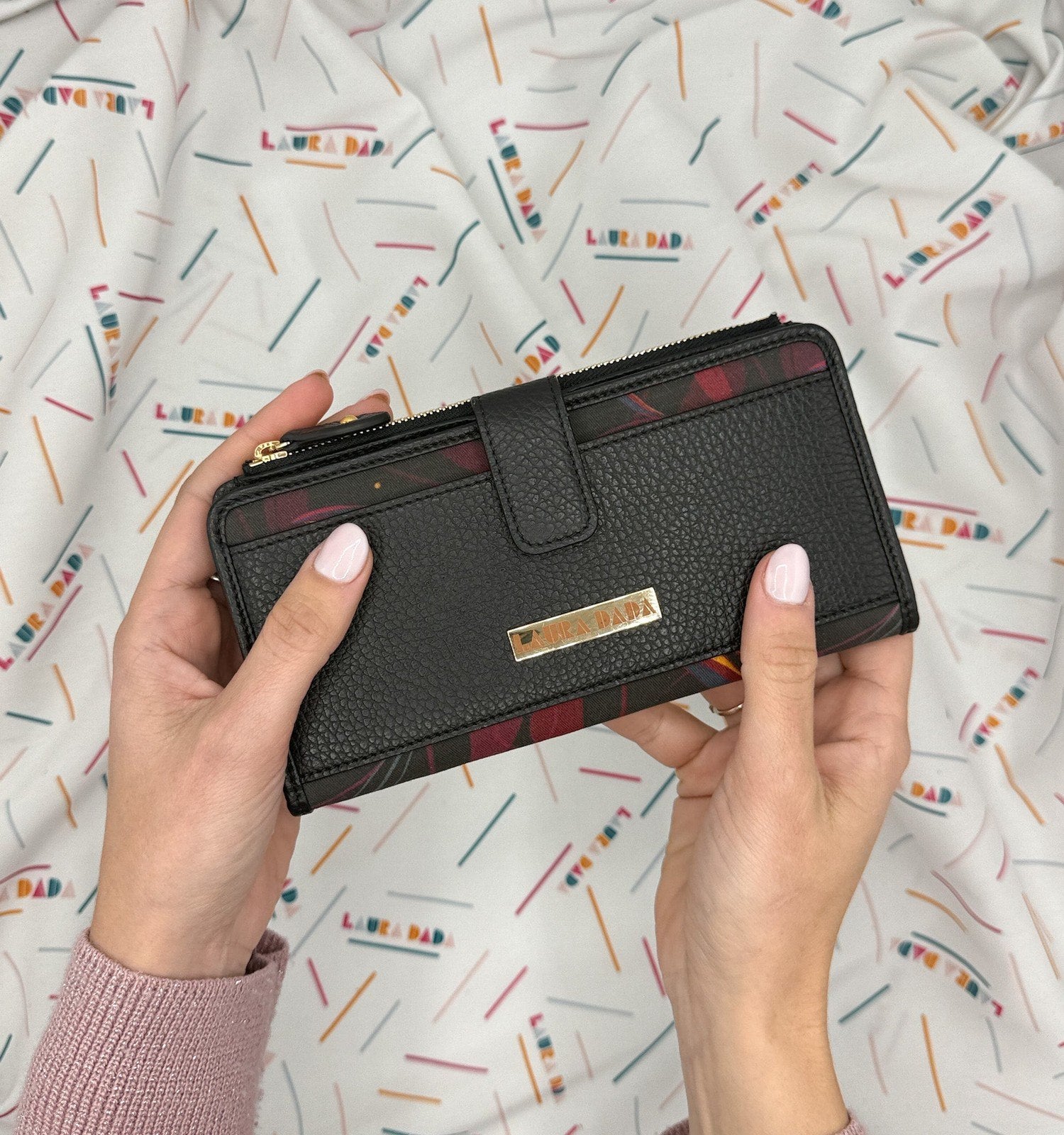 Portafoglio TILDA pelle nera e stampa Sterlizia + Star Box