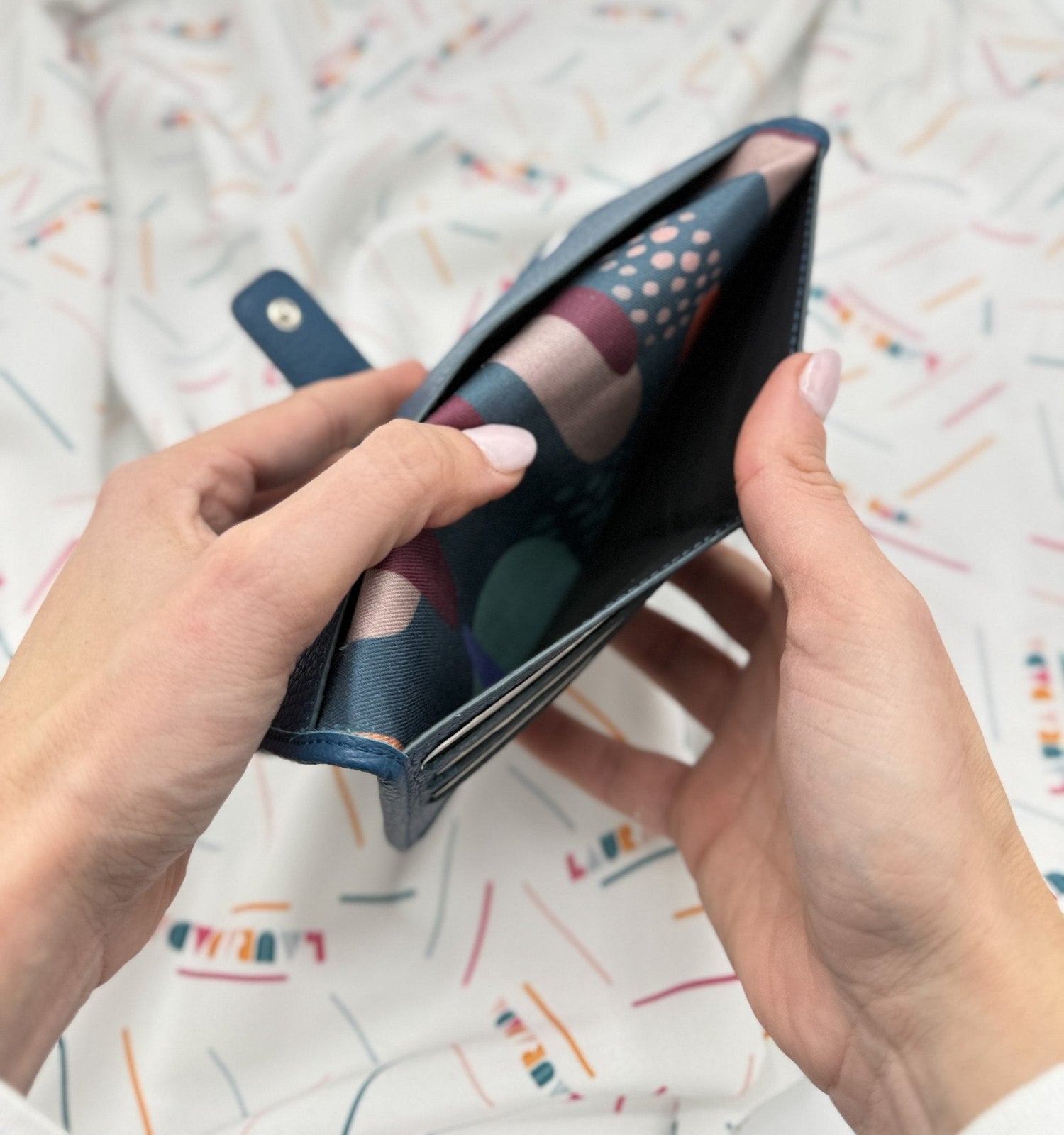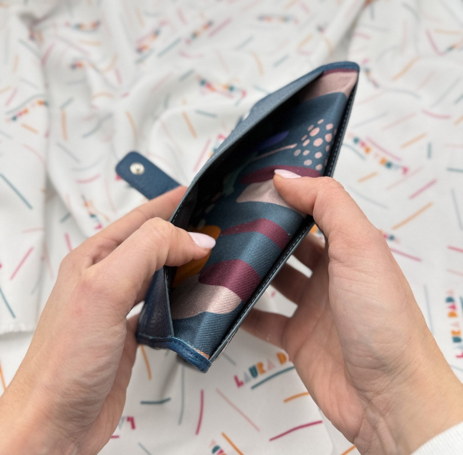 Portafoglio TILDA pelle blu pavone e stampa Riverside + Star Box ✨