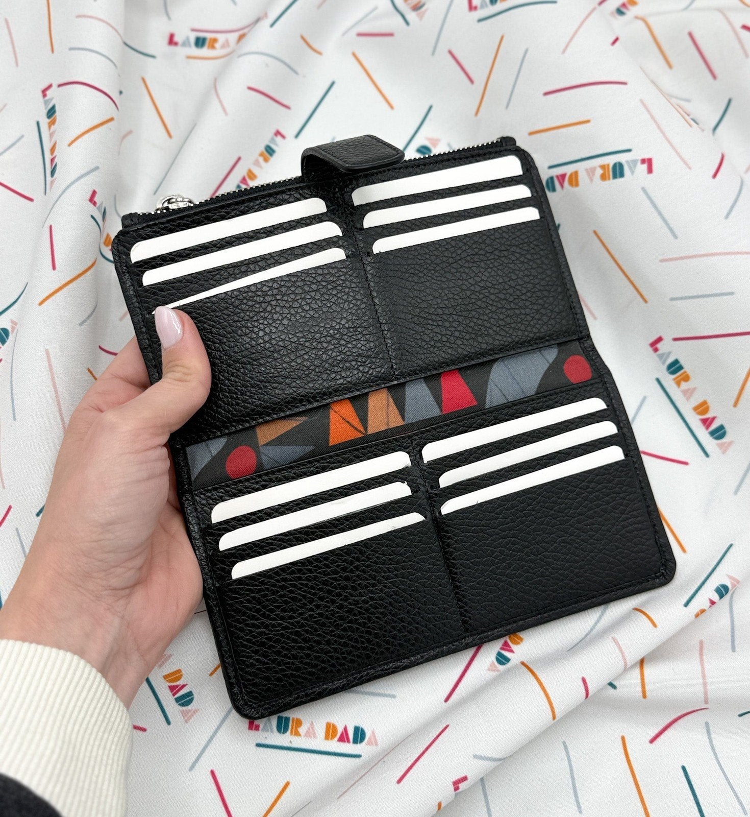 • 2 tasche aperte interne per contanti, scontrini e fogli vari