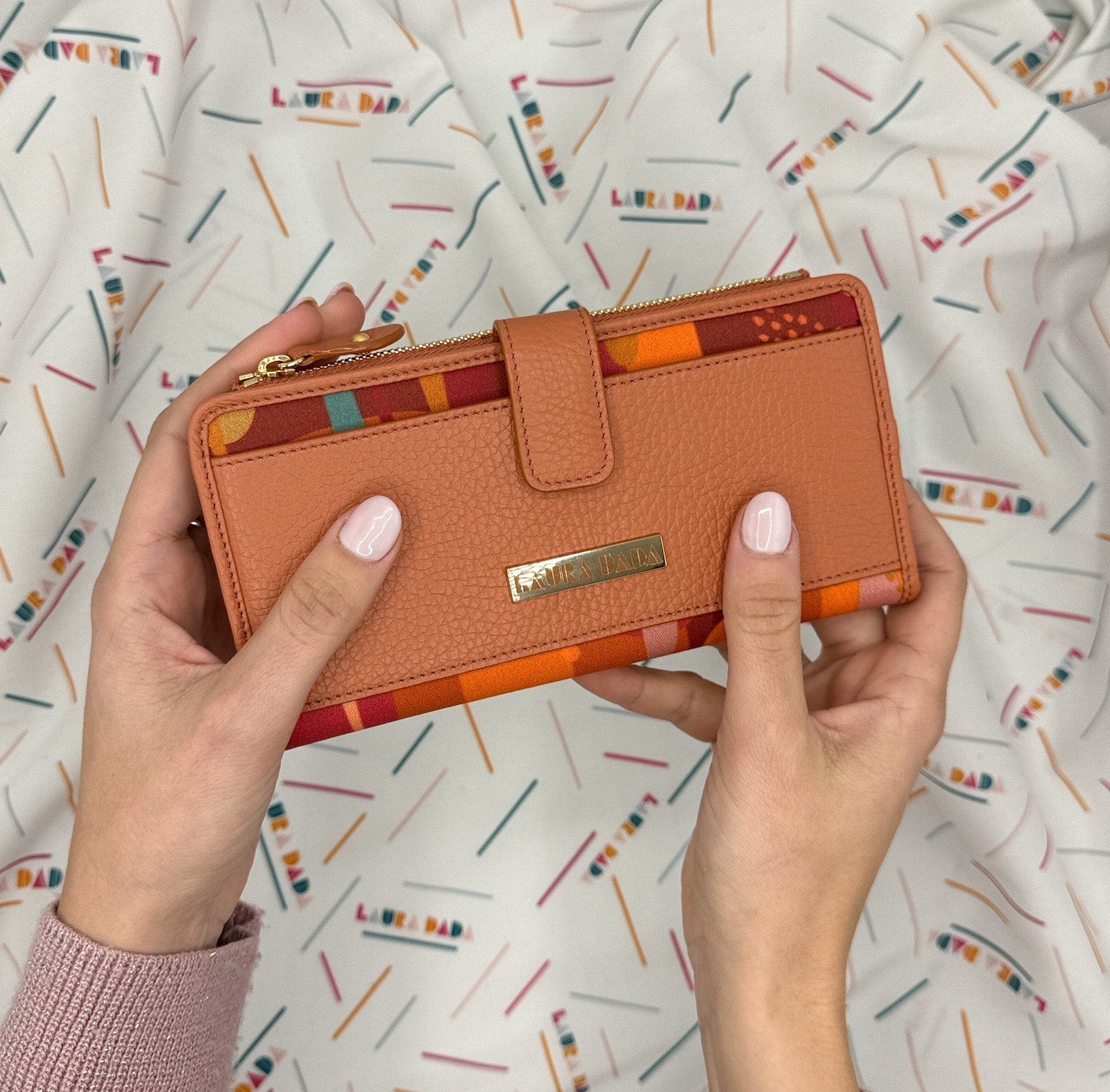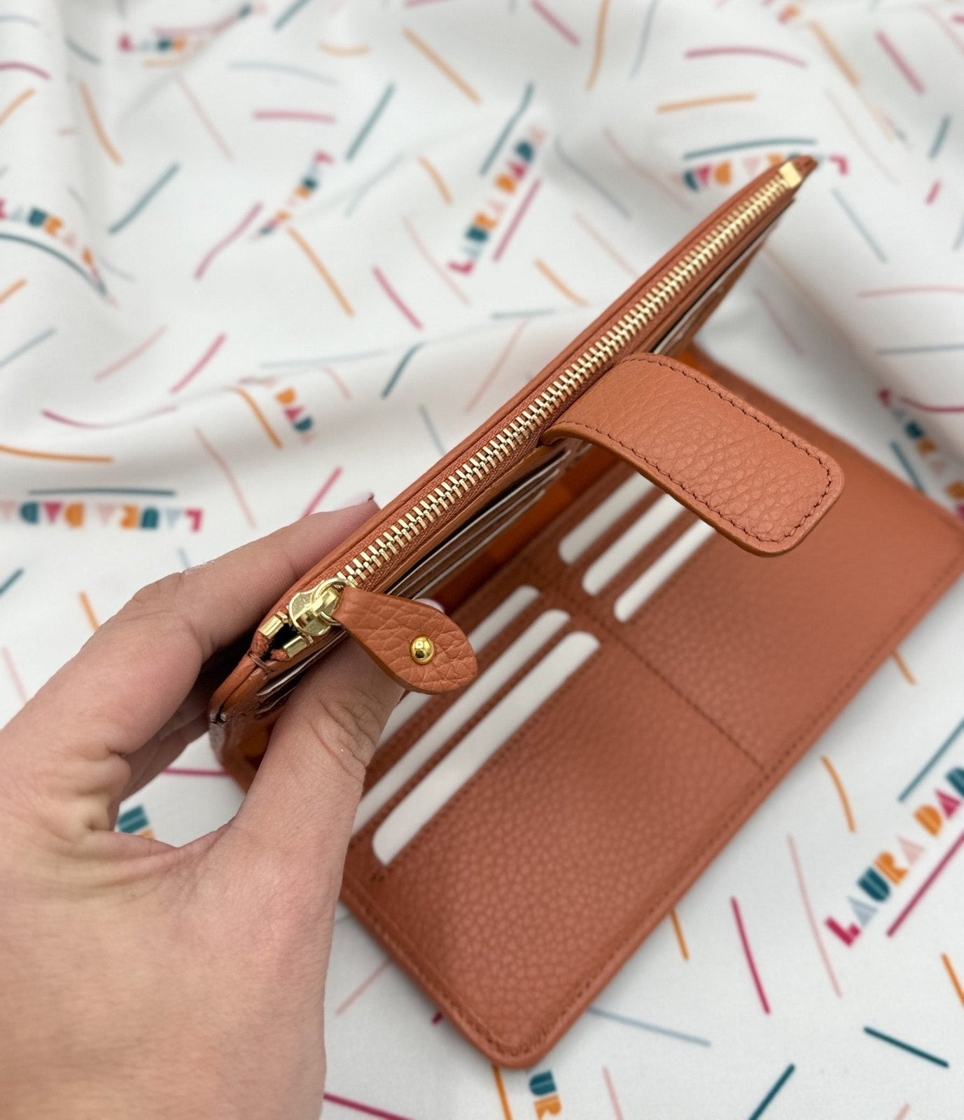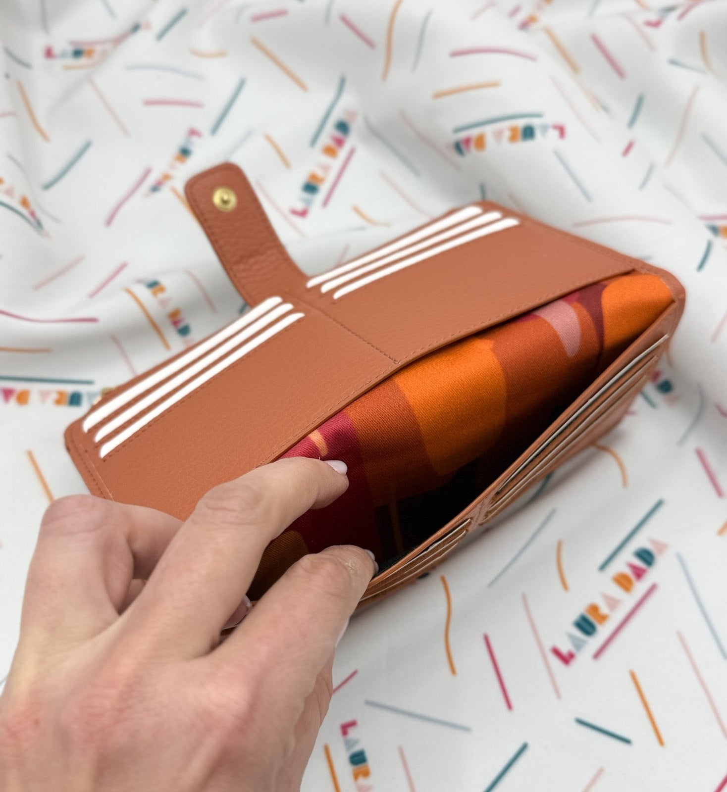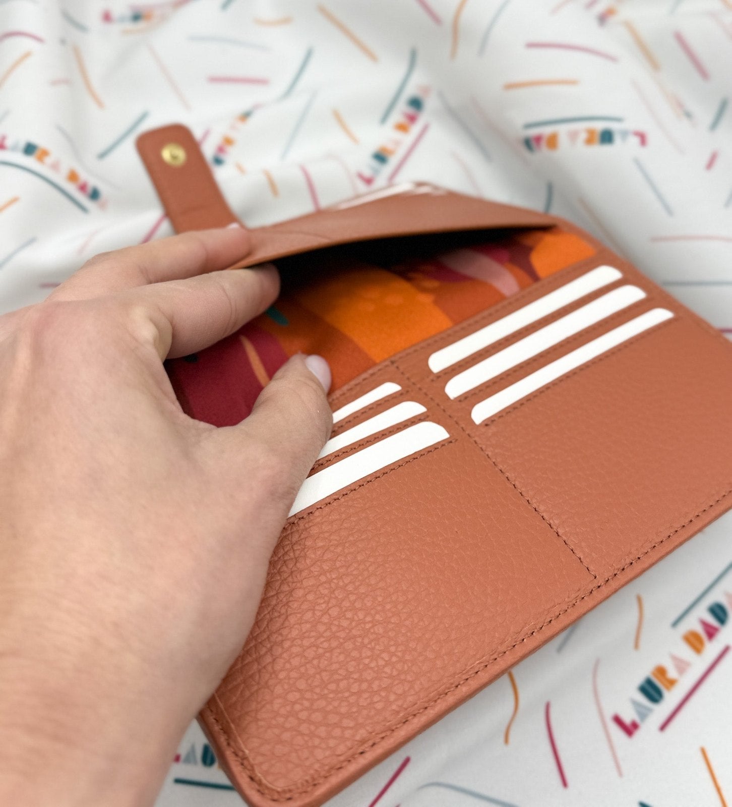 Portafoglio TILDA pelle terracotta e stampa Riverside + Star Box