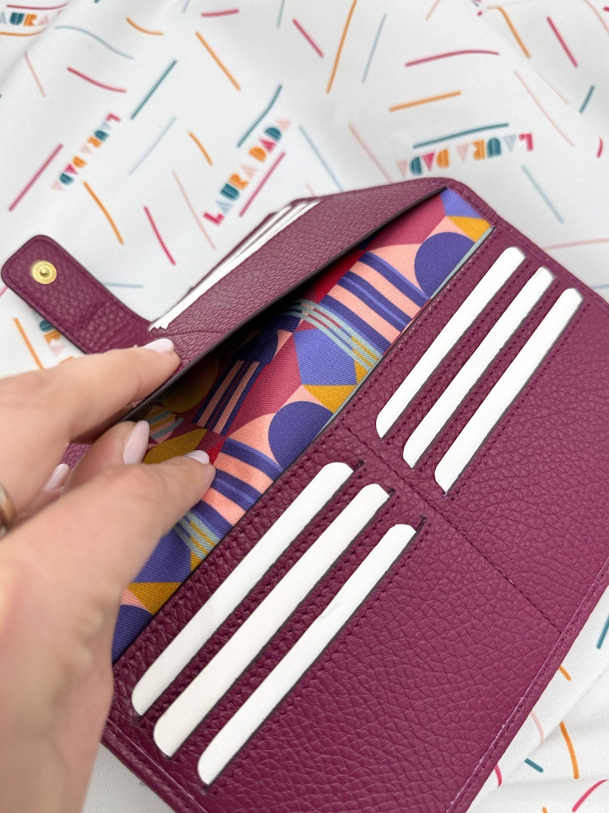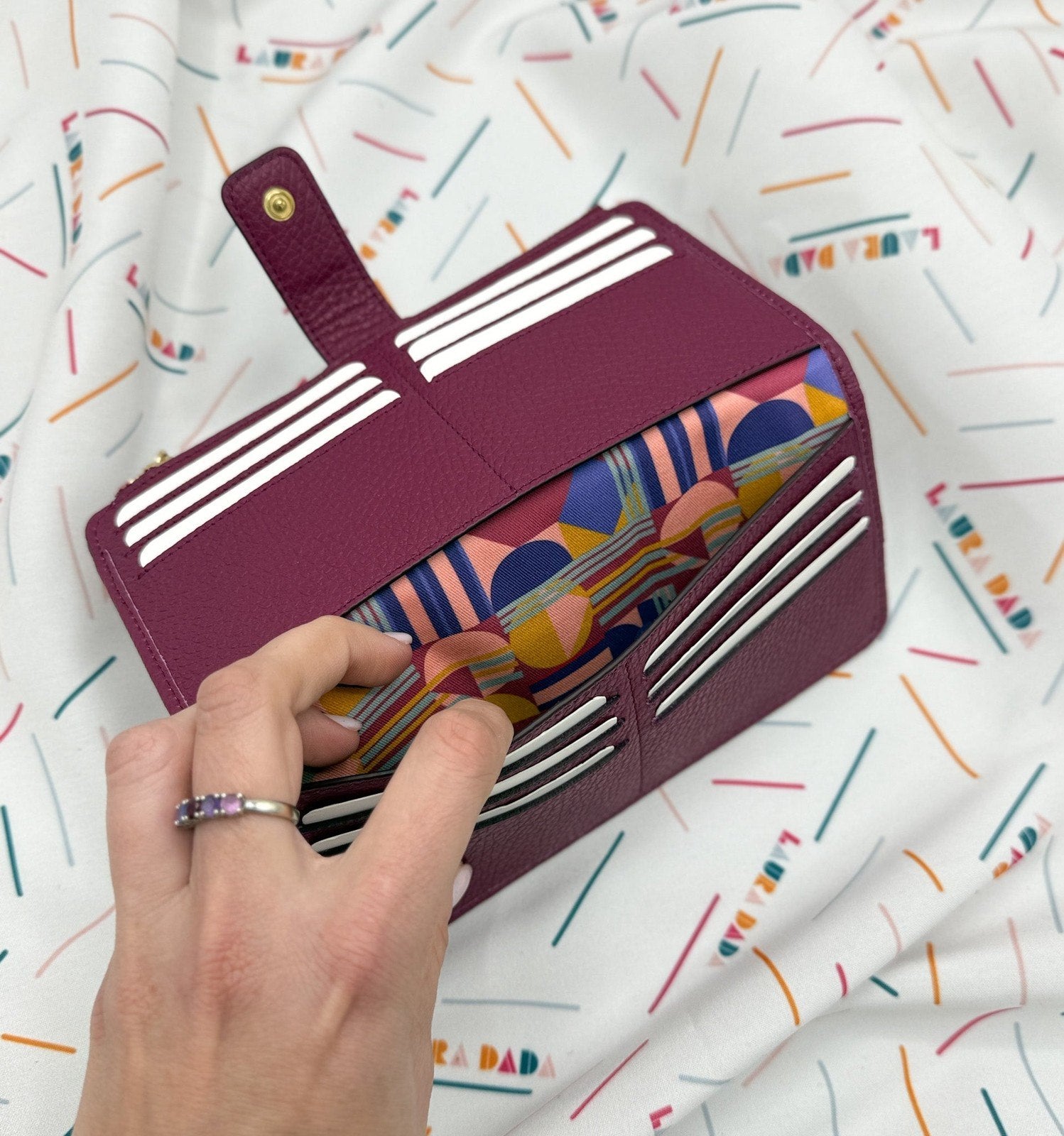 Portafoglio TILDA pelle ciclamino e stampa House of the Sun + Star Box