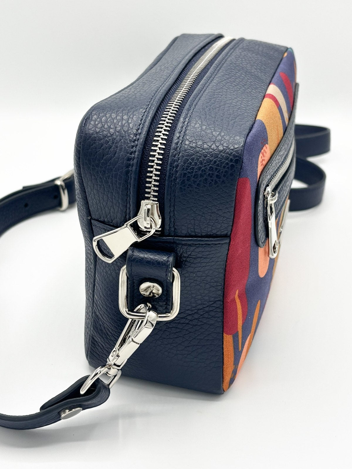 Tracolla Florence blu notte e stampa Riverside - su ordinazione