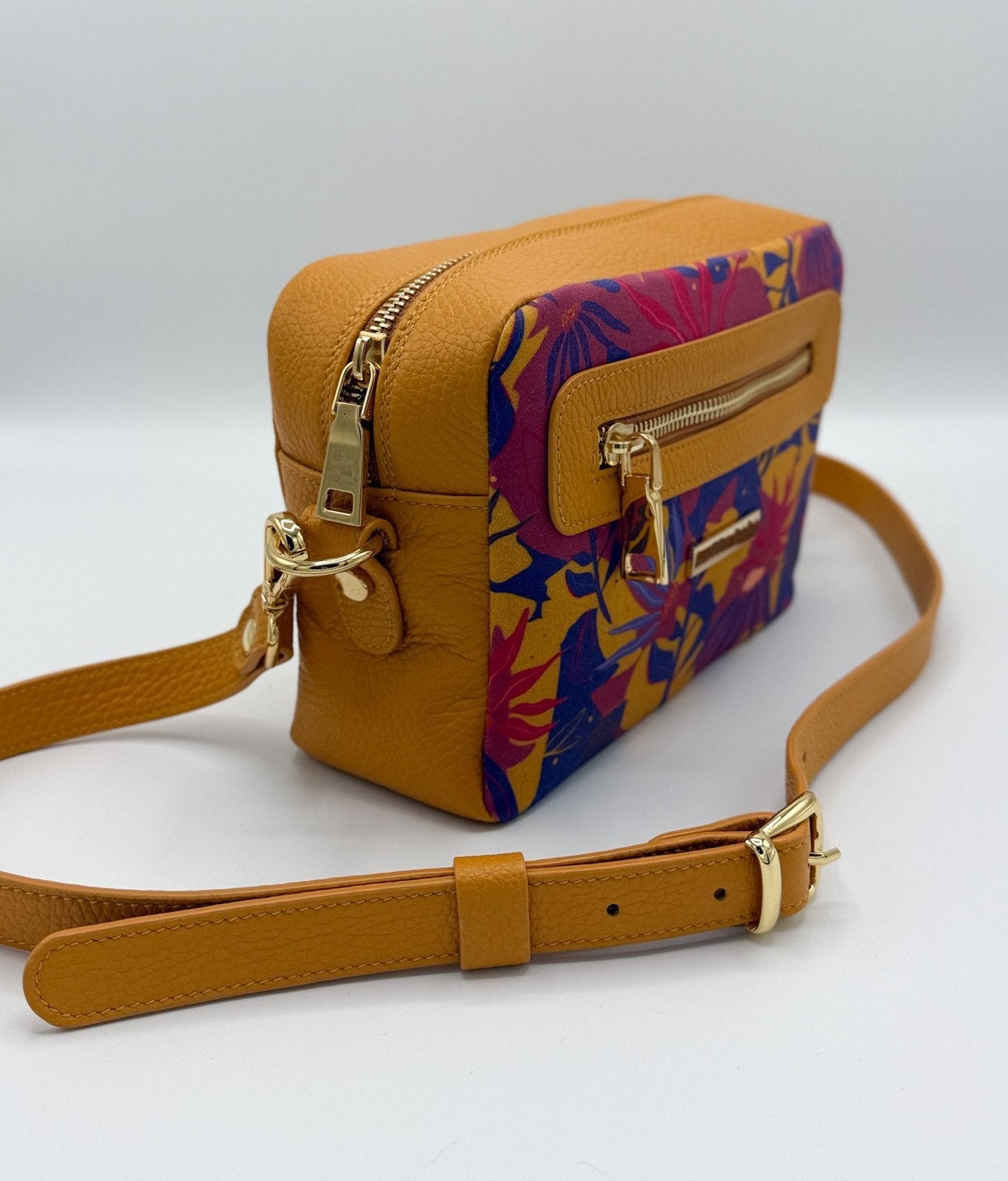 Realizzata a mano, è in vera pelle Made in Italy abbinata a stampe originali e colorate.